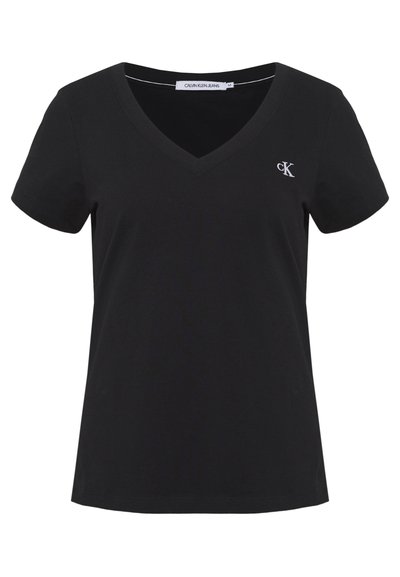 EMBROIDERY V NECK - T-shirt basique - black