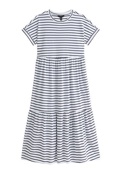 Stripe Tiered Midi Smock - Robe de jour - white pattern
